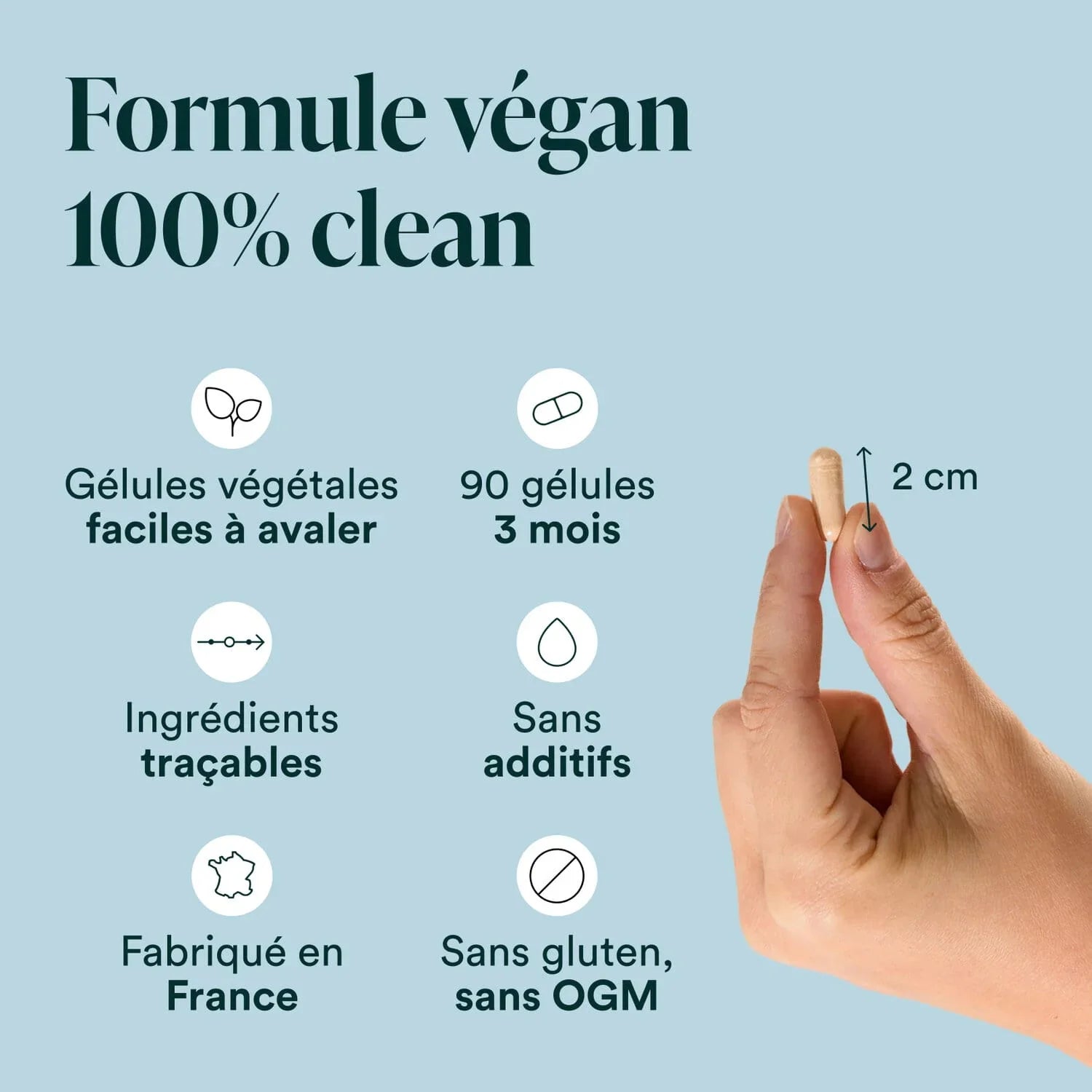 Mais ses bienfaits ne s’arrêtent pas là ! Pour une action complète, notre complément une combinaison des meilleurs actifs anti-âge : de l’acide hyaluronique, de la vitamine C, de la vitamine E, du zinc bisglycinate, de la biotine et de la vitamine B6.