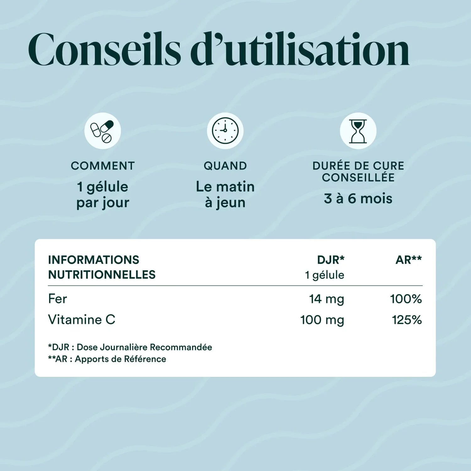 Pour des effets optimaux, la durée de cure conseillée est de 3 mois.