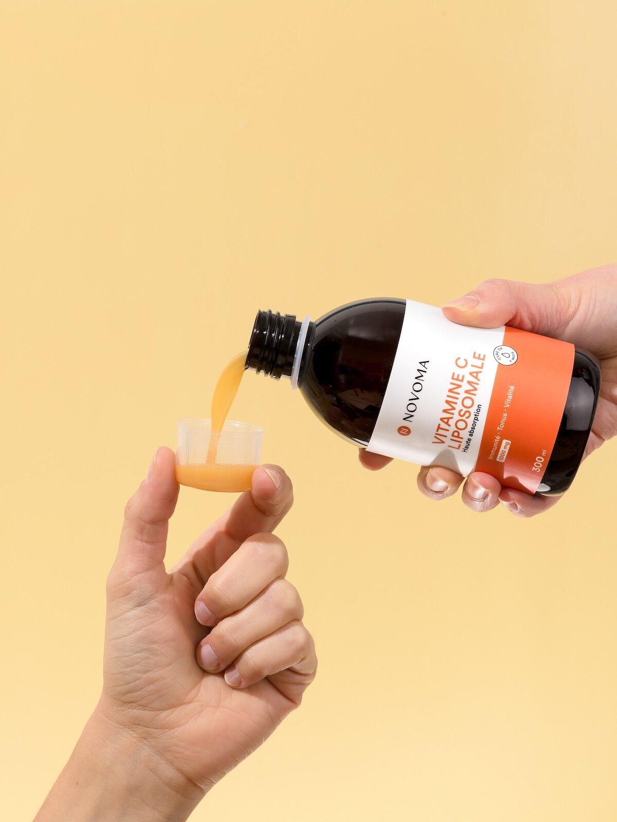 Chaque bouteille est accompagnée d'un bouchon doseur gradué. Pratique pour doser avec précision vos apports en vitamine C !